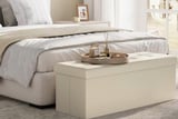 And for options that double as decor, interior designer Beth Diana Smith swears by storage that works hard and looks good. “I like to store blankets in places that are easy to access, have a dual purpose, or act as hidden storage,” she says. “I love using trunks and oversized lidded wicker or seagrass baskets. Baskets are great for hidden storage and can be beautiful decor pieces!”