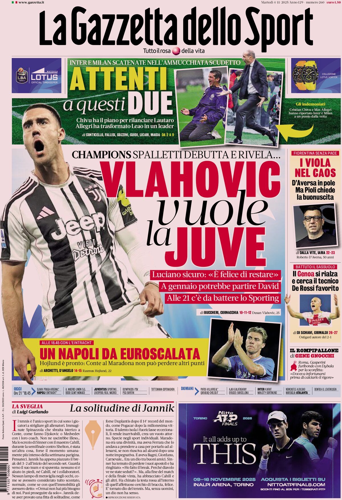 The new coach relaunches Scudetto ambitions (‘until the end, or better, beyond the end’) and reminds the team of its European dimension. ‘This is the suite of football, we play on par. Yildiz is a bit like Kvara and a bit like Di Natale.’ David, thoughts of farewell in January, but the coach wants to revive him. From the retreat: meals without mobile phones.